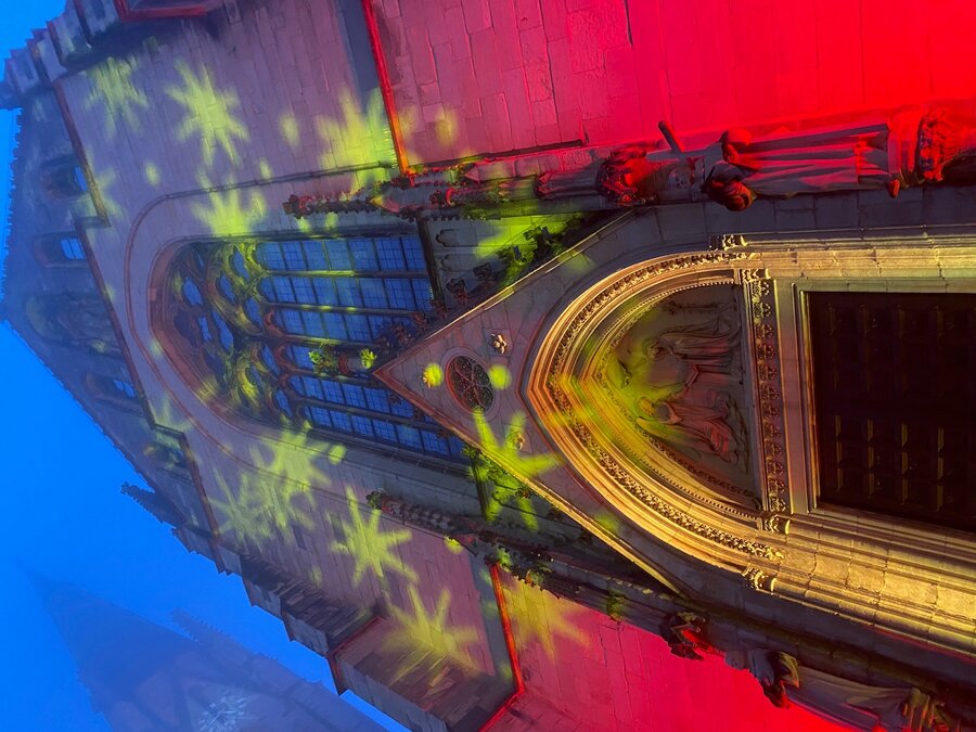 Um 17 Uhr schalten wir gleichzeitig mit dem Anzünden der dritten Kerze unseres großen Adventskranzes auf der Domplatte die Beleuchtung ein und lassen das Rathaus, den Dom und auch die Johanniskirche in bunten Farben erstrahlen.