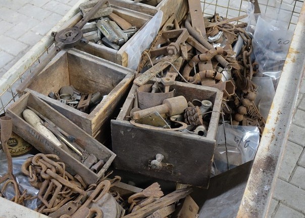 Hier warten „Schätze“ auf Sie, die wir versuchen werden wie „warme Semmeln“ an Mann, Frau und alle anderen Interessierten zu bringen. Echte Fundstücke aus der Alten Schmiede in der Münsterstraße 22 – von alten Holzwaschmaschinen, einem Badeofen der noch mit Feuer betrieben wurde, bis hin zu Hufeisen und allerlei Schrott, der voller Geschichte steckt. Falls noch jemand Fahrradspeichen benötigt, gibt es diese ebenfalls, denn Fahrräder wurden in der Alten Schmiede auch schon repariert.